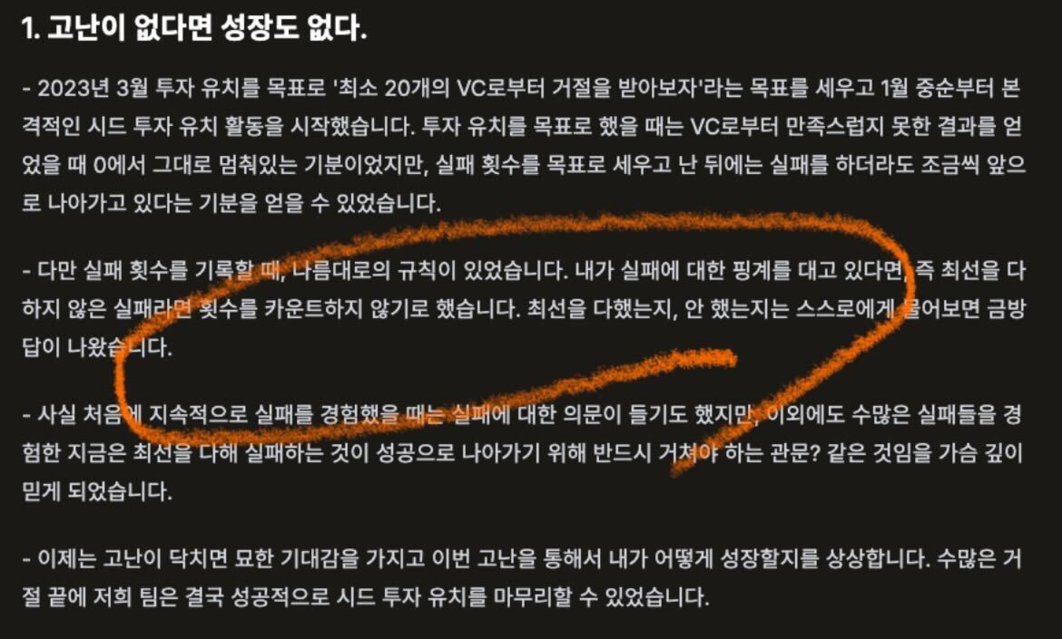 인 것 같습니다. 성공은 어렵지만, 실패는 그에 비해 쉽습니다. 실패를 모아본다고 생각하면 어떨까요? 다가올 실패에 굴하지 않을 때, 비로서 성장하는 것 같습니다.